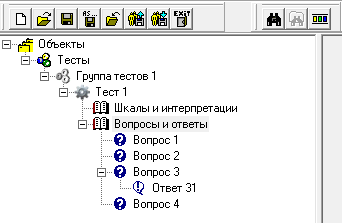 В Конструкторе тестов раскройте узел «Вопросы и ответы» и убедитесь в появлении списка вопросов и ответов из подготовленного нами файла.