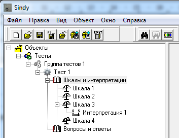 В Конструкторе тестов раскройте узел «Шкалы и интерпретации» и убедитесь в появлении списка шкал и интерпретаций из подготовленного нами файла.