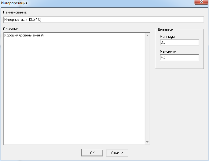 Выделите узел «Шкалы и интерпретации» в некотором тесте на дереве узлов Конструктора тестов и нажмите кнопку панели инструментов