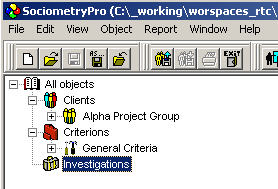 - Select “Investigation 1” sociometry testing node in SociometryPro.